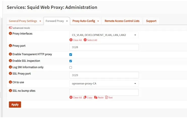 - 개발/cs망에서 외부로 데이터가 이동할 때 OPNsense의 NAT Port Forward 규칙에 의해, 목적지가 80(HTTP) 또는 443(HTTPS)인 트래픽은 외부로 나가지 않고 Ubuntu 보안 서버의 3128/3129 포트로 강제 굴절된다.