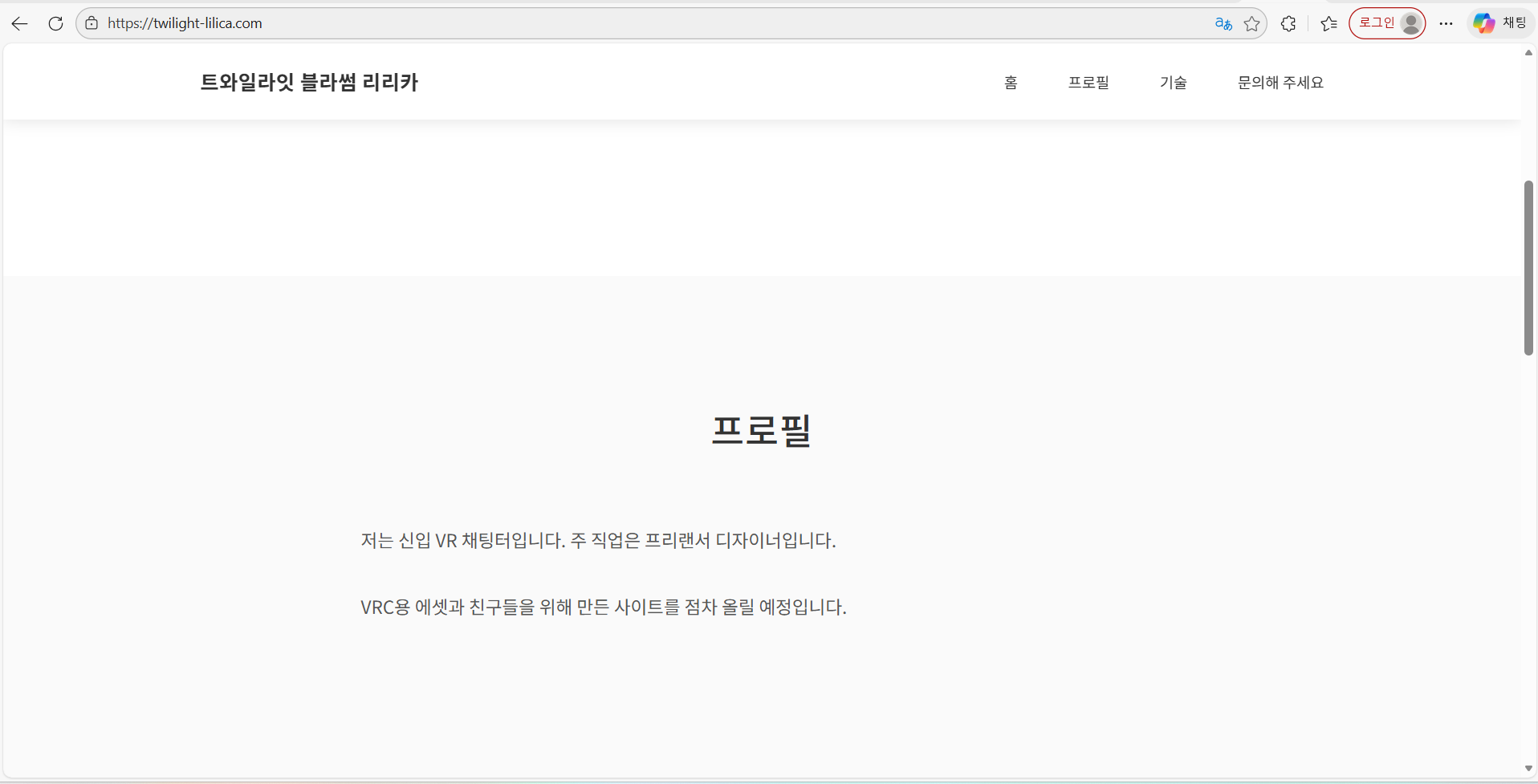 그리고 https://twilight-lilica.com/ 메인 홈페이지에 접속하면