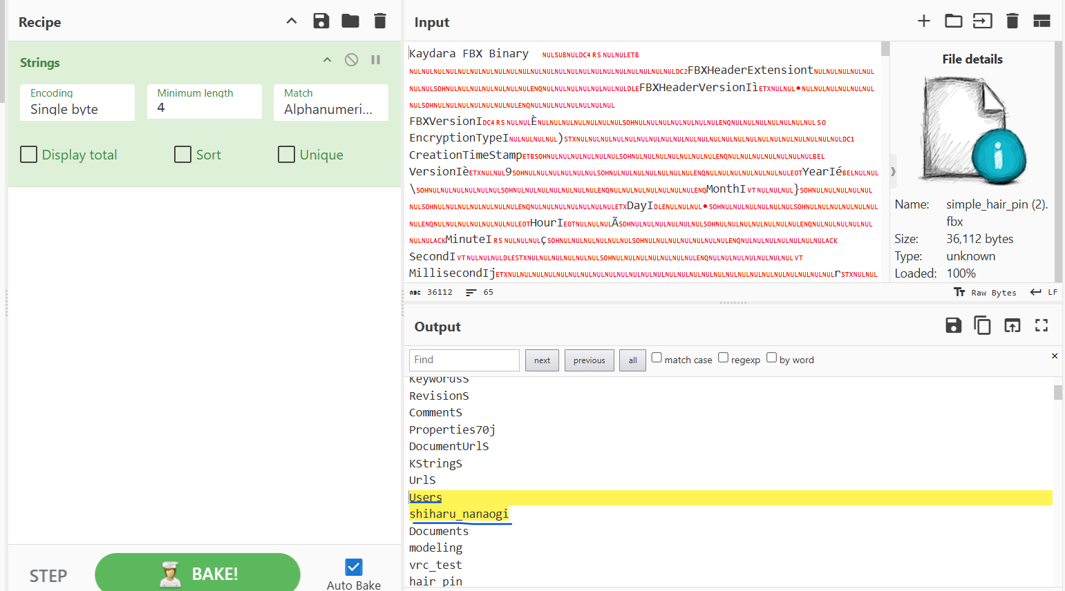 이를 CYBERCHEF를 이용해 strings 문자열 형태로 변환 해주게 되면